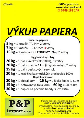 V utorok 26.08.2025 od 17:00 do 17:10 hod. sa v našej obci uskutoční výkup papiera pri predajni COOP Jednota. Aktuálny cenník a podmienky výkupu sú uvedené na plagáte.