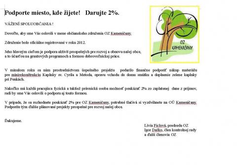 Darujte 2% na činnosť pre OZ Kameničany