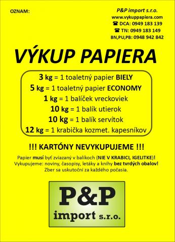 V utorok, 6. 9. 2014  sa uskutoční v našej obci výkup papiera v čase od 16: 00 do 17. 00 h pri predajni COOP Jednota.